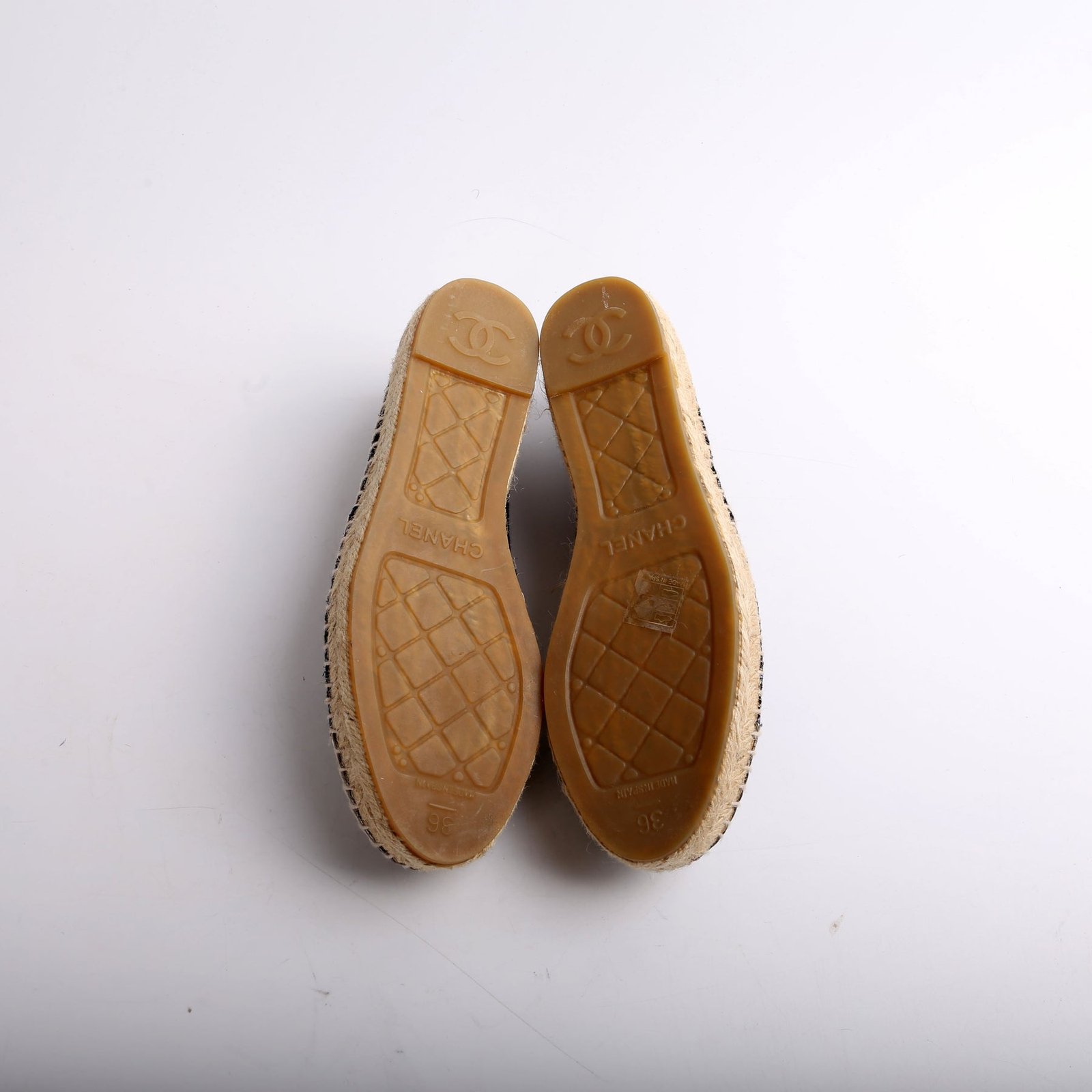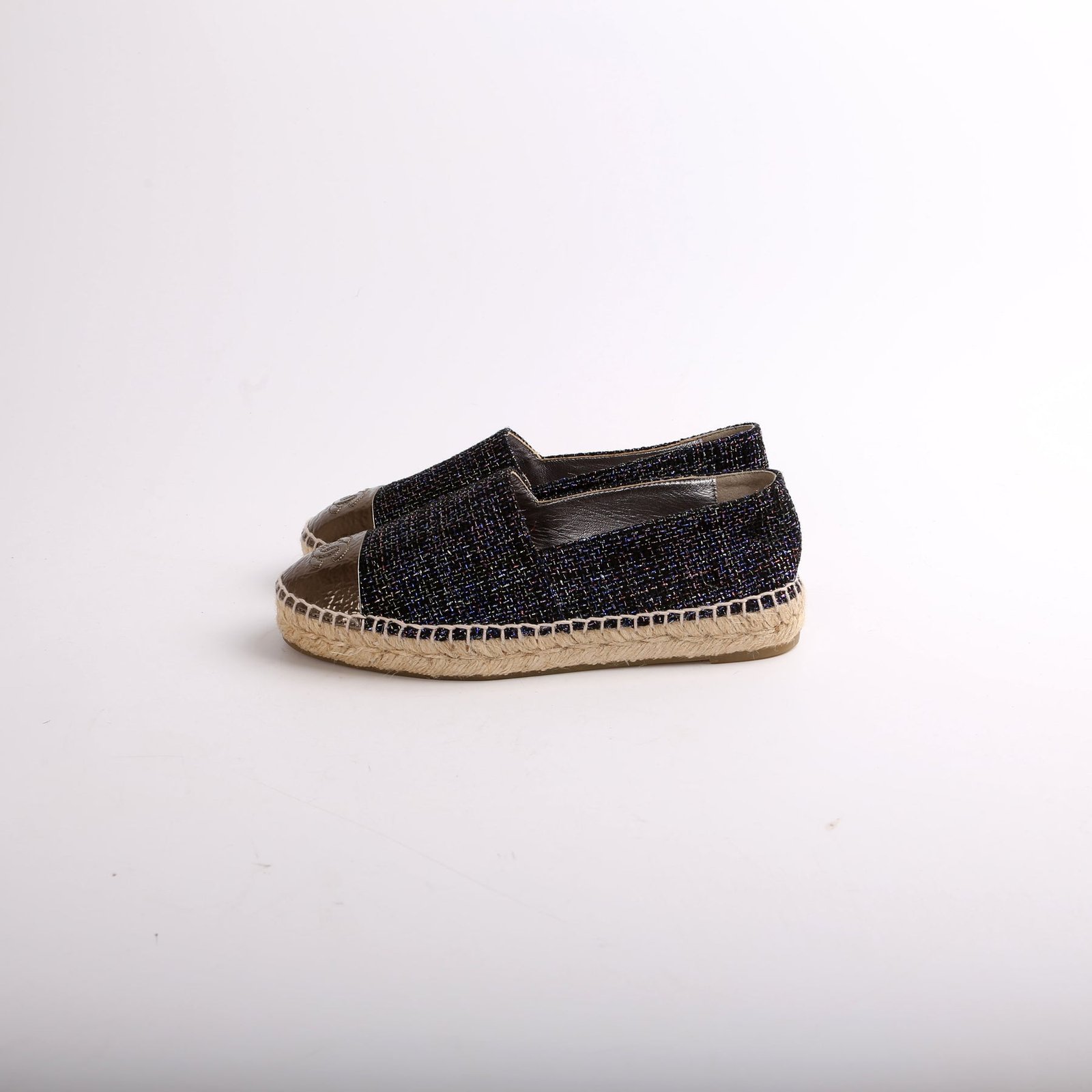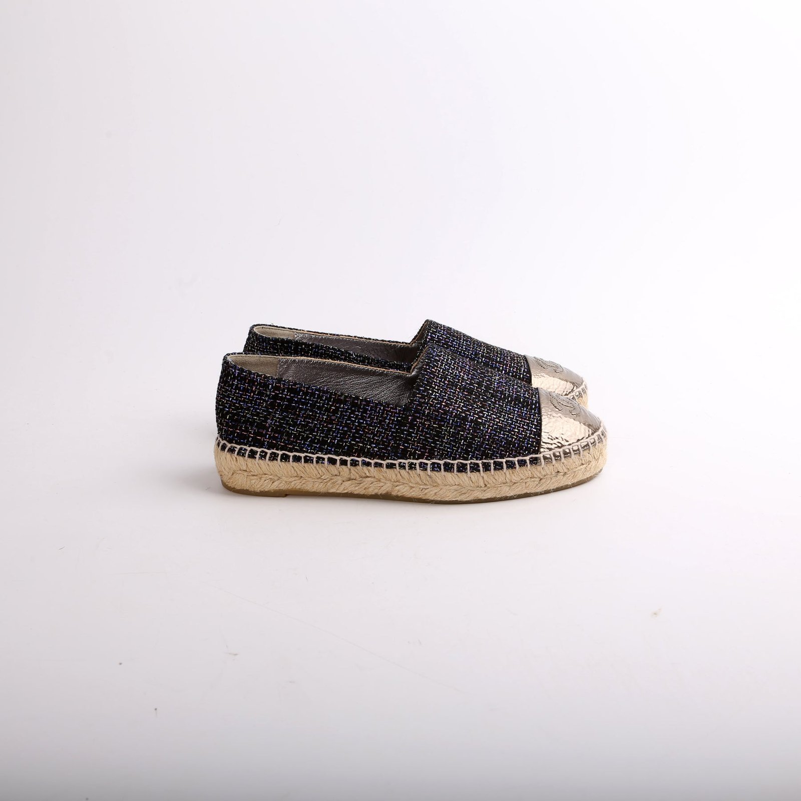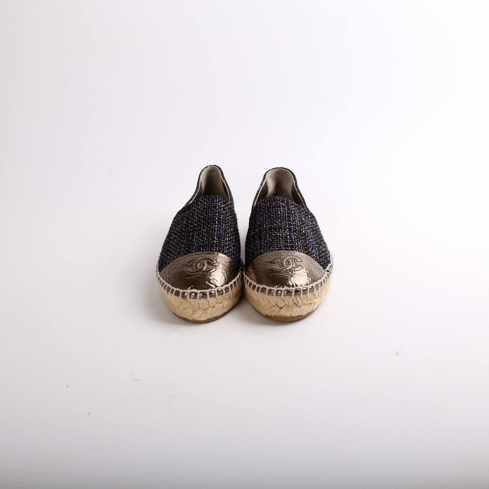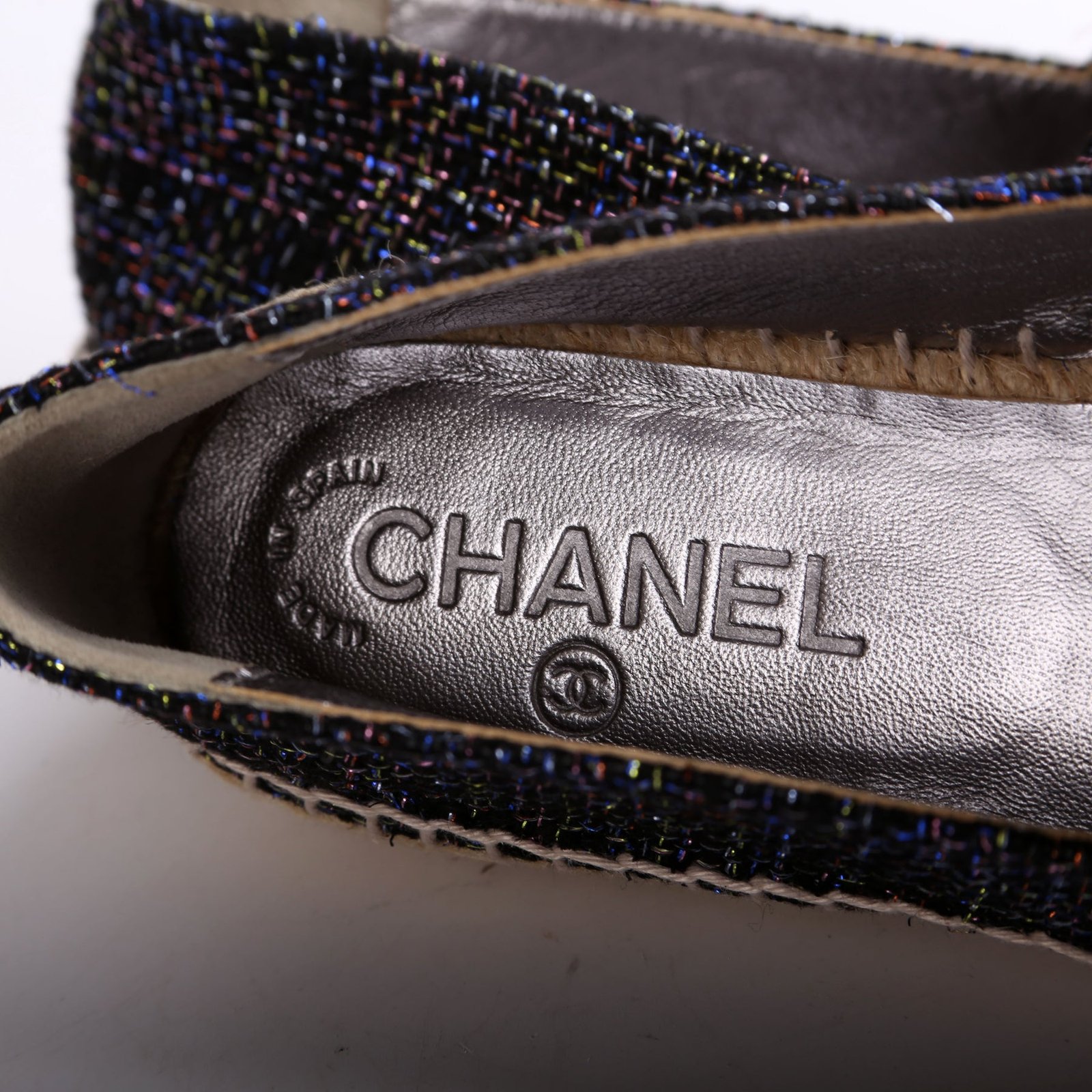 These pre-owned Chanel Tweed CC Espadrilles are guaranteed 100% authentic.